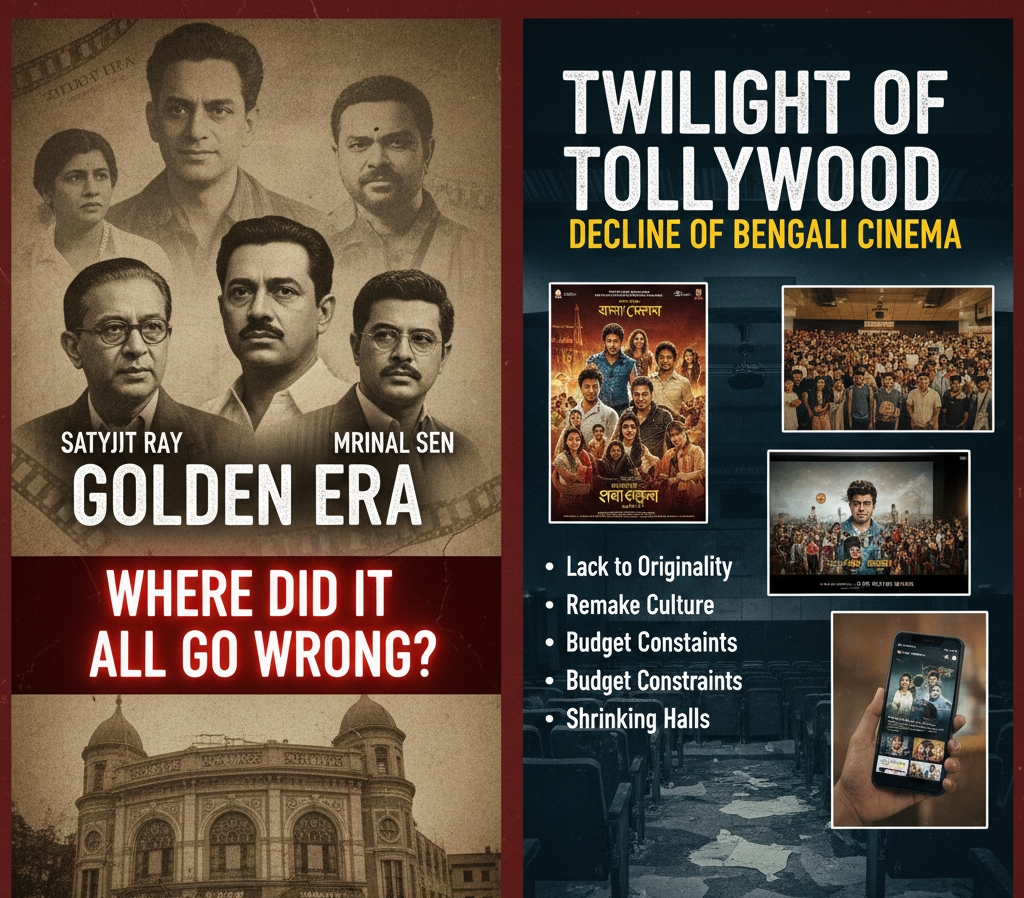 নিজস্ব প্রতিবেদন, কলকাতা: সত্যজিৎ রায়, ঋত্বিক ঘটক, মৃণাল সেনের হাত ধরে যে বাংলা সিনেমা একসময় বিশ্বমঞ্চে শ্রেষ্ঠত্বের শিরোপা ছিনিয়ে এনেছিল, আজ সেই বঙ্গদেশেই বাংলা চলচ্চিত্রের অবস্থা অত্যন্ত শোচনীয়। হলগুলোতে দর্শক নেই, বড় বাজেটের ছবি তৈরির সাহস পাচ্ছে না প্রযোজকরা, আর ডাবিং করা দক্ষিণী বা বলিউড ছবির দাপটে কোণঠাসা হয়ে পড়ছে স্থানীয় সিনেমা। কিন্তু প্রশ্ন হলো— শৈল্পিক ঐতিহ্যে সমৃদ্ধ এই বঙ্গে কেন এই অবনতি?