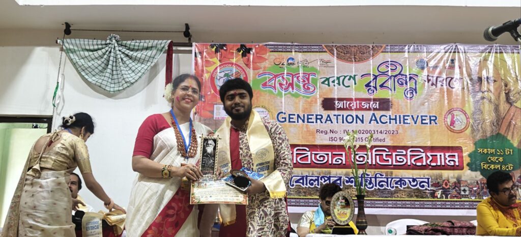শান্তিনিকেতনের গীতবিতান অডিটোরিয়ামে গত ৫ই এপ্রিল, রবিবার এক বর্ণাঢ্য অনুষ্ঠানের মধ্য দিয়ে উদযাপিত হলো জেনারেশন অ্যাচিভার আয়োজিত ‘বসন্ত বরণে রবীন্দ্র স্মরণ’। সর্বভারতীয় এই প্রতিষ্ঠানের পক্ষ থেকে আন্তর্জাতিক সাহিত্য দিশারী ও আন্তর্জাতিক সাংস্কৃতিক মহামঞ্চের যৌথ উদ্যোগে আয়োজিত এই সাহিত্য ও সাংস্কৃতিক অনুষ্ঠানটি আক্ষরিক অর্থেই এক মিলনমেলায় পরিণত হয়েছিল।